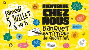 Le 05 juillet, nous avons organisé l’évènement “Bienvenue chez nous”, banquet artistique partagé, suivi d’un bal.