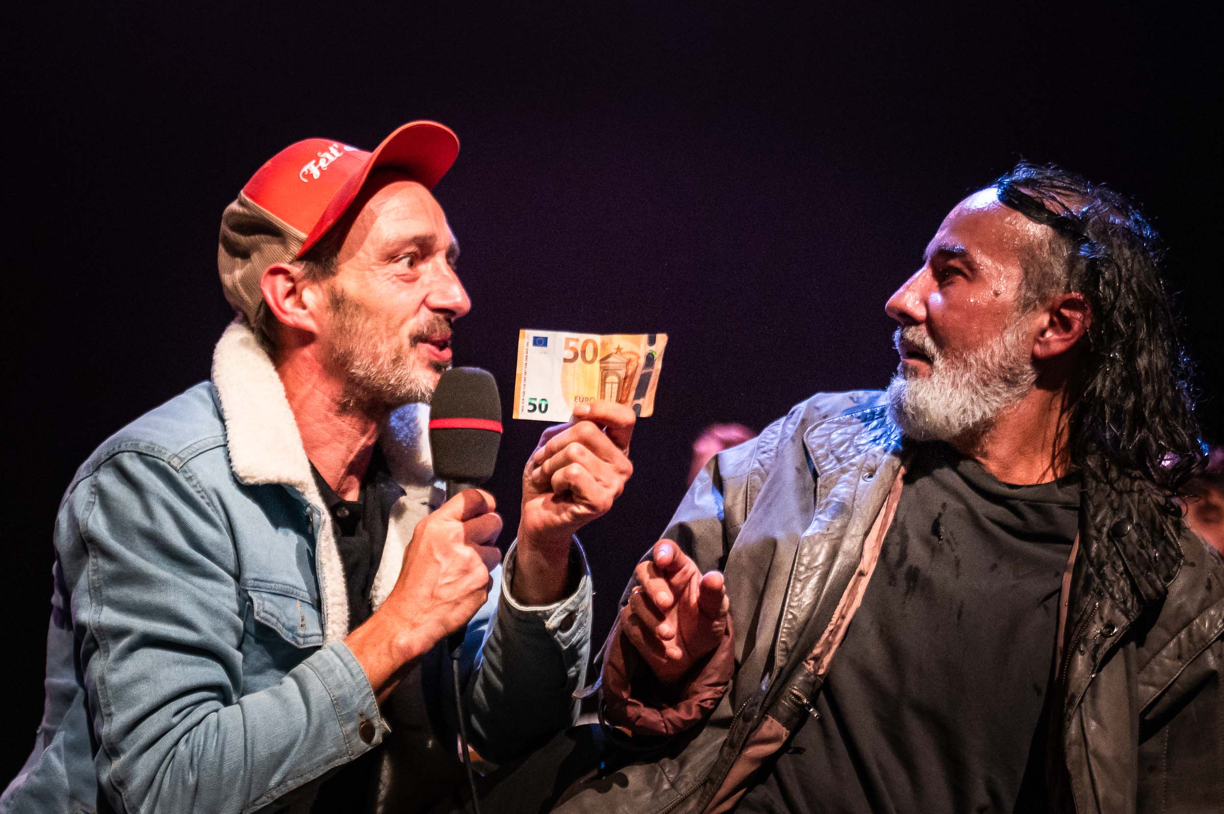 ≈ Alors évidemment, cette pièce nous fait de l’effet.Un effet exutoire. À l’instar d’un « Faut pas payer » de Dario Fo en son temps, ou plus récemment avec « Le Capital et son singe » de Sylvain Creuzevault et encore « Argent Pudeurs et Décadences » du collectif AiAA. Un effet désopilant, cruel et cathartique.